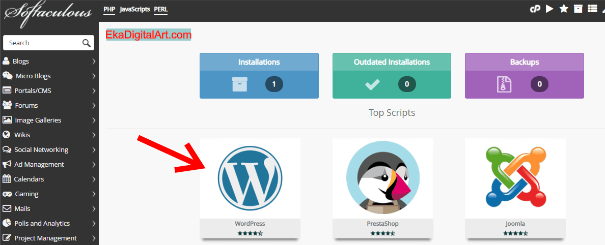 Scroll ke bagian bawah, cari icon wordpress lalu klik.